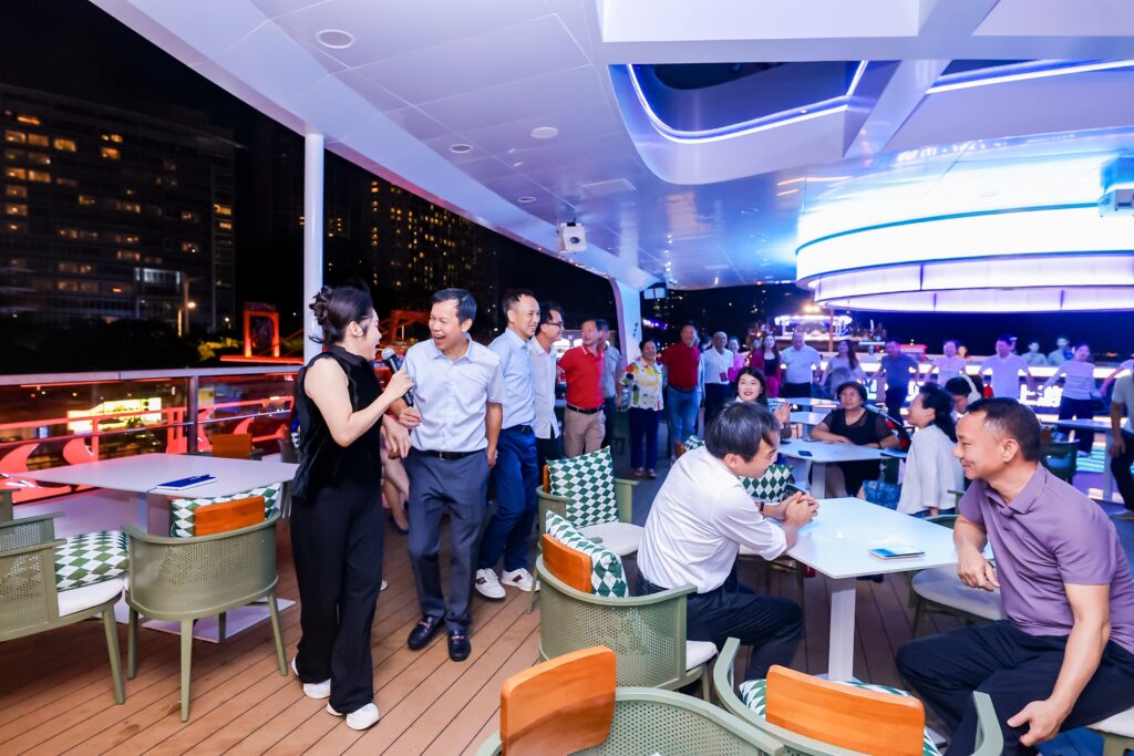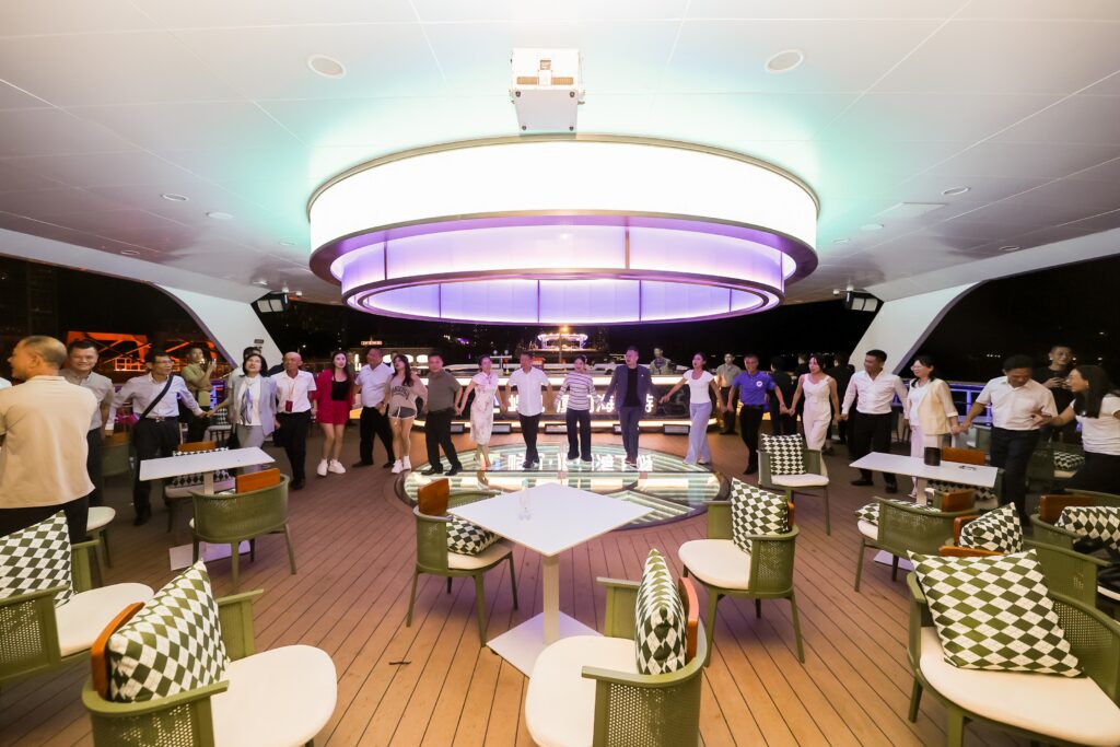 当庆典晚宴的温情与敬意逐渐沉淀,一场更为宏大的叙事在海上展开。商会特邀全球海商代表,登临“屿见77”海上会客厅,于繁星灯火交织中,共赴一场意义非凡的夜景盛宴。
