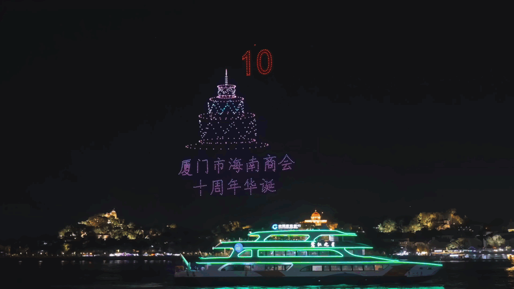 这已超越视觉盛宴,更是一场精神的礼赞与决心的宣言。它既蕴含着海南人勇立潮头、敢闯敢试的精神传承,更映照出我们扎根鹭岛、深耕厦门的坚定信念。在千架无人机编织的璀璨星河下,厦门市海南商会翻开了新十年的壮丽篇章,见证着海南人在福建厦门热土上以心筑梦、以行践诺的坚实足迹。