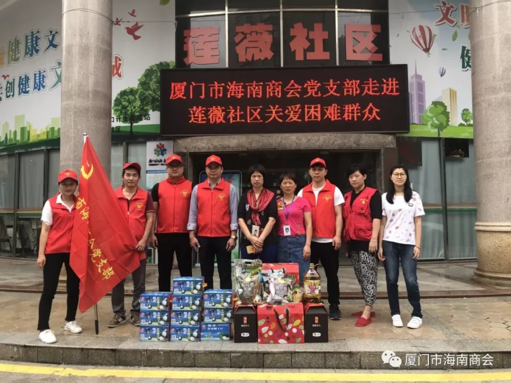 2019年06月14日,厦门市海南商会党支部组织支部党员带着会长单位厦门椰牛食品有限公司赞助的椰子汁和党支部书记林道南赞助的粮油走进厦门市思明区莲薇社区关爱困难群众,为他们送上关心、关爱。