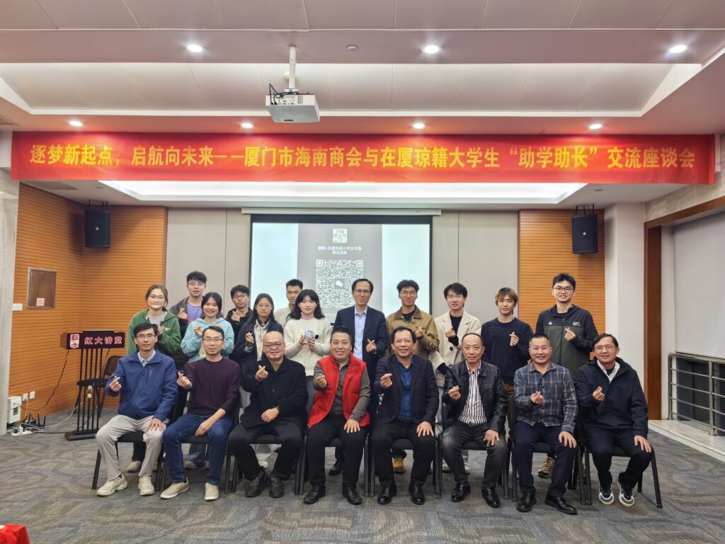 2024年12月15日下午,厦门市海南商会在深田大厦成功举办了一场以“逐梦新起点,启航向未来”为主题的“助学助长”讲座交流会。此次活动是商会届期内的一场公益活动,旨在进一步了解及帮助在厦琼籍在校大学生的成长与发展,搭建起商会与学子之间的桥梁。