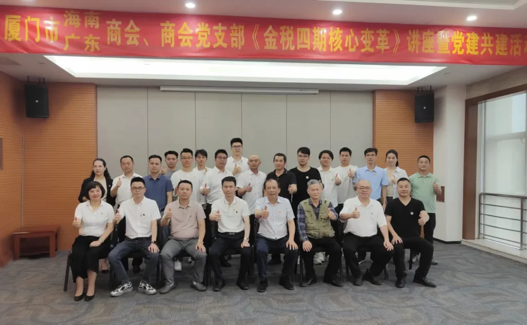 2025年4月19日下午,厦门市海南商会携手厦门市广东商会,共同举办了一场别开生面的《金税四期核心变革》讲座暨党建共建活动。我会党支部书记兼副会长龙强、副会长周岁红、本期轮值会长吴文、厦门市广东商会党支部书记兼副会长吴晓光、副会长杨志清、黄东旭等30多名党员、会员参加此次活动。